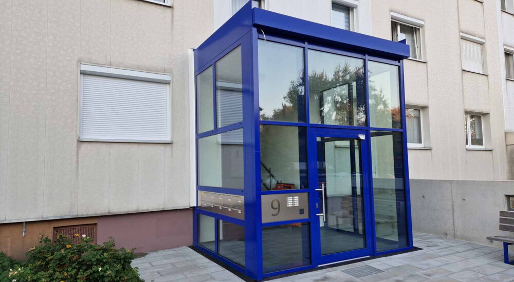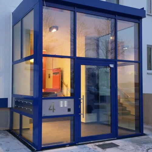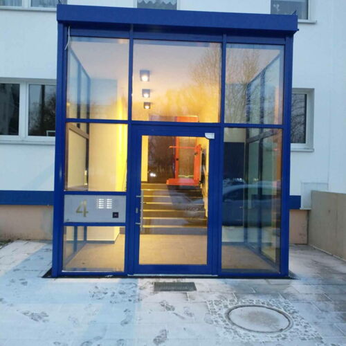 • Eingangsvorbau als Pfosten-Riegel-Konstruktion